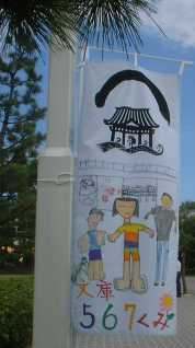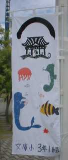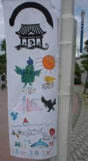 2003年の、第5回金沢文庫芸術祭では、今回の1DAYイベントの会場となった八景島の島内に、恒例の芸術祭開催をアピールする、小学校のクラス作品の「のぼり」が飾られました。