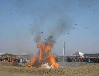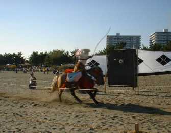 | "Yabusame", Japanese archery on horseback in fall | "Dondo-yaki", an event of new year in winter |